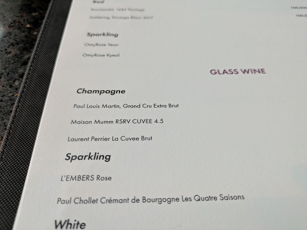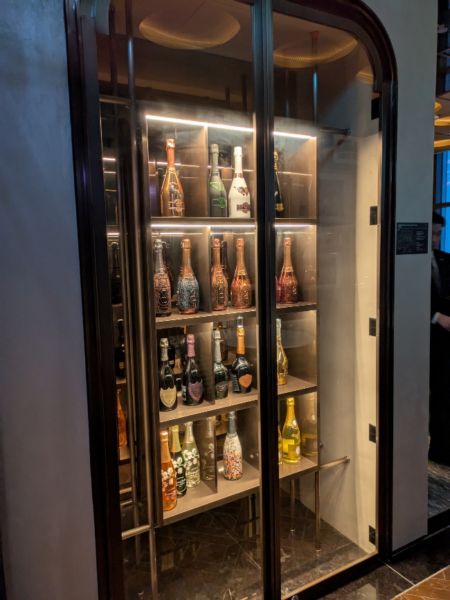 入り口にはシャンパンが並んでいて、どれくらいの種類があるのか気になりましたが、メニューにはここの展示数より遥かに少ない種類しか記載がありませんでした。